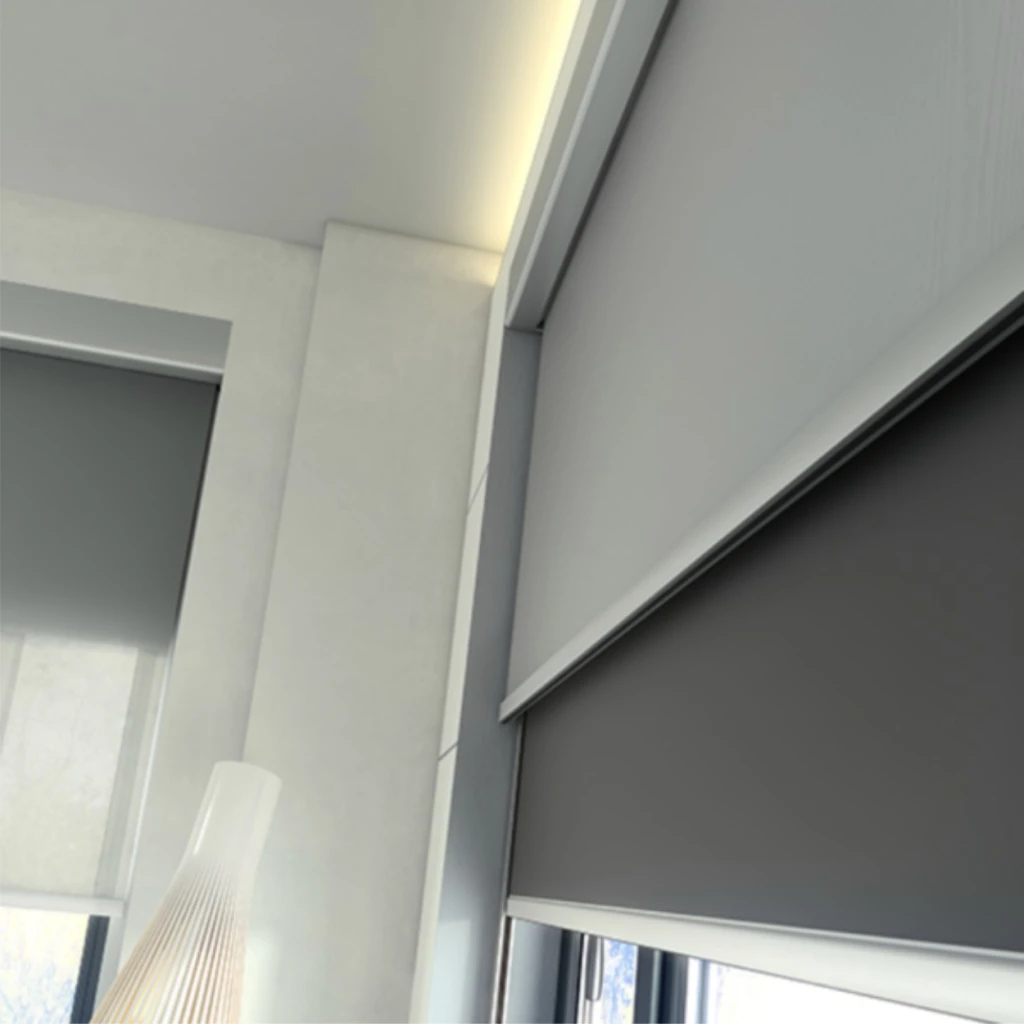 Sistema que combina dos telas en una misma cortina, permitiendo alternar entre diferentes niveles de transparencia y opacidad según las necesidades del ambiente.